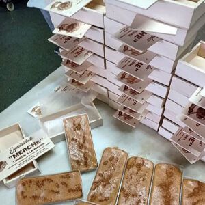 El proceso de elaboración es todo un ritual. En sus obradores, los turrones se trabajan a mano, tal y como se hacía antaño. No hay lugar para la producción industrial en masa ni para atajos: aquí, cada tableta es el resultado de la dedicación y el saber hacer de maestros turroneros que conocen a la perfección cada fase de la receta. El control de los tiempos de cocción, el punto exacto de la mezcla y el moldeado cuidadoso forman parte de un método que se ha conservado intacto con el paso de las décadas.